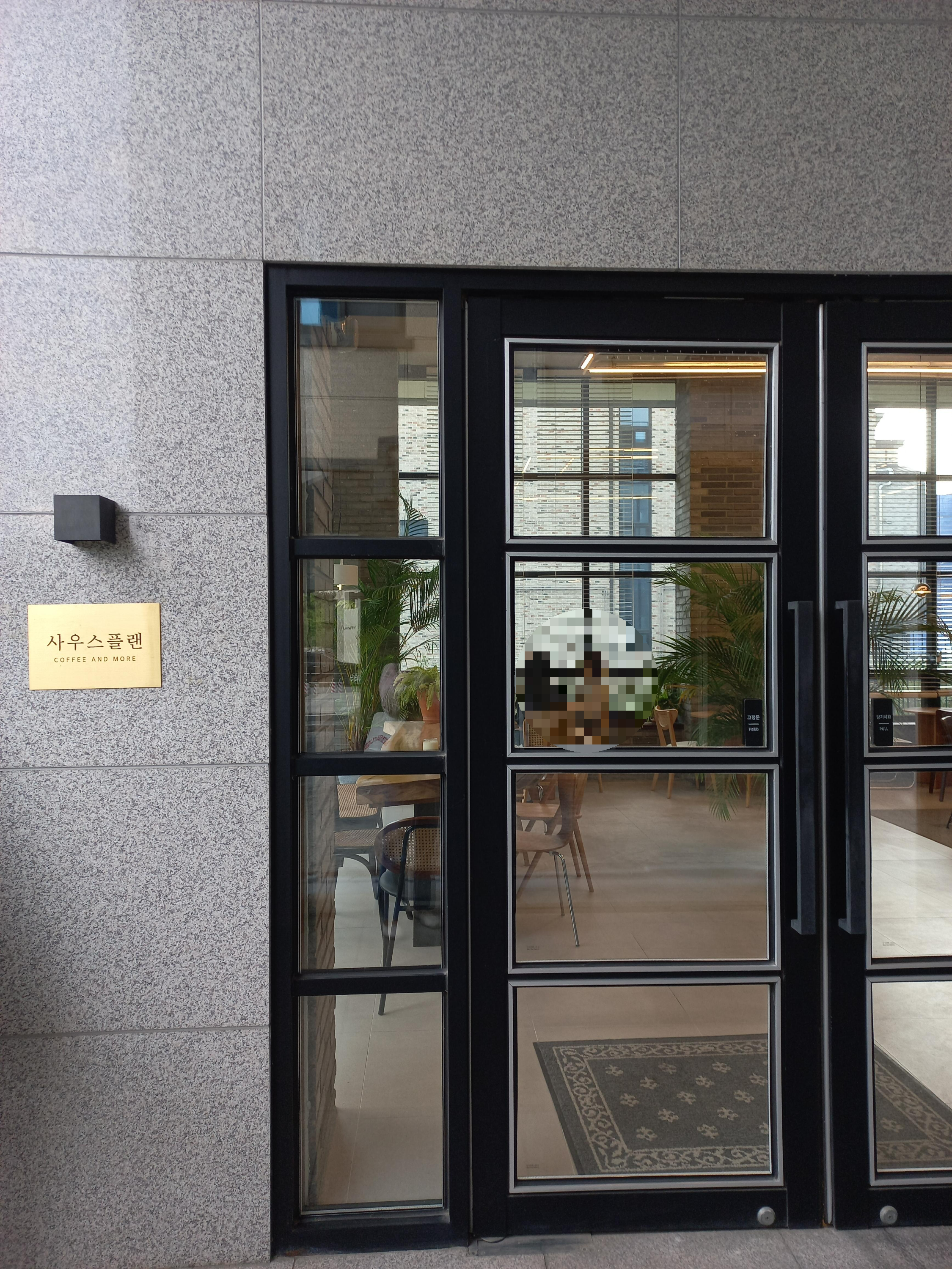 카페입구예요 왼쪽에 사우스플랜이라고 조그맣게 카페이름이 써져있어요 :)