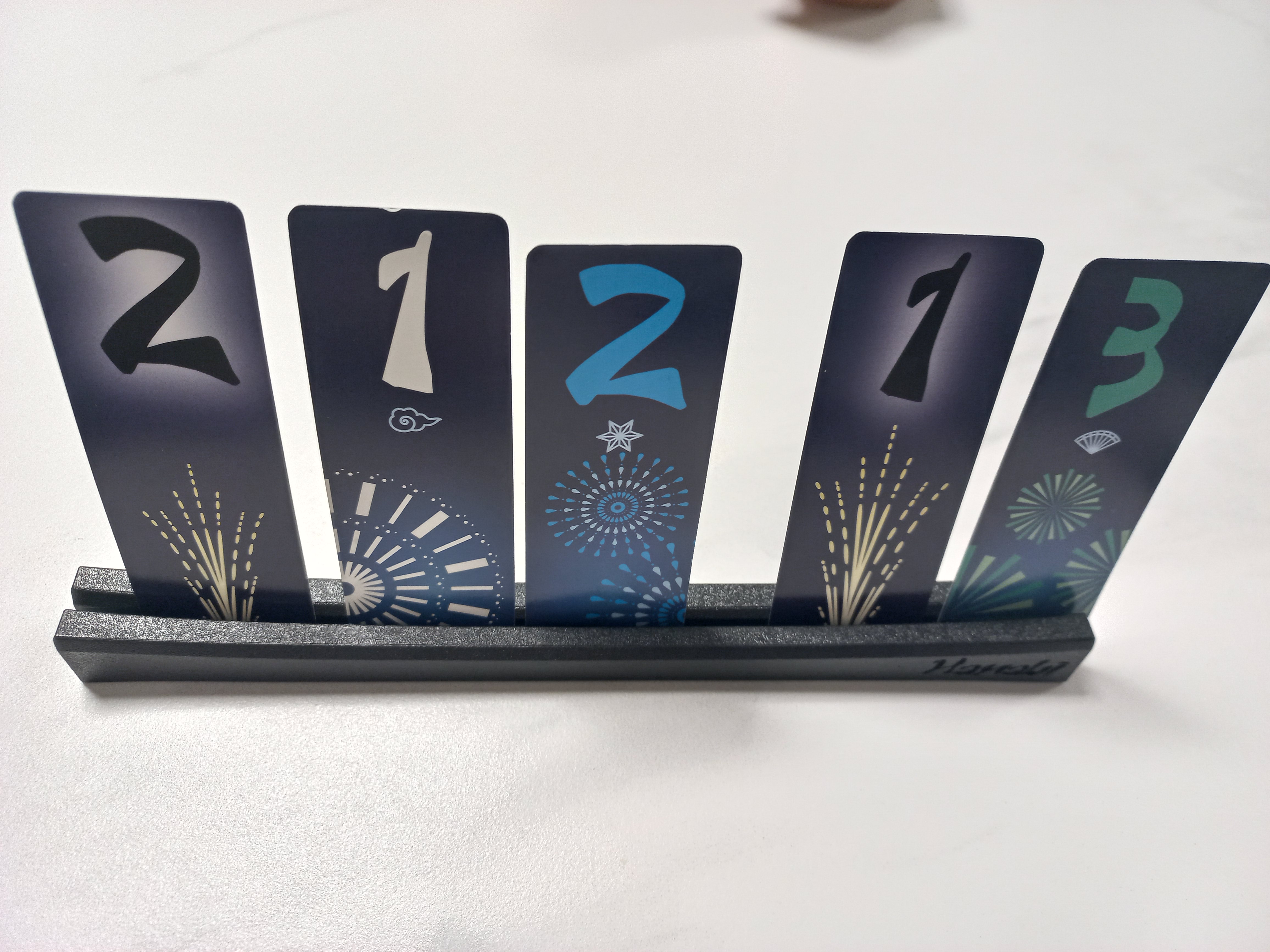 *검은카드가 내림차순으로 1까지 완성되면 주머니 밖에 있는 힌트토큰을 다시 주머니 안으로 하나 가져올 수 있어요.