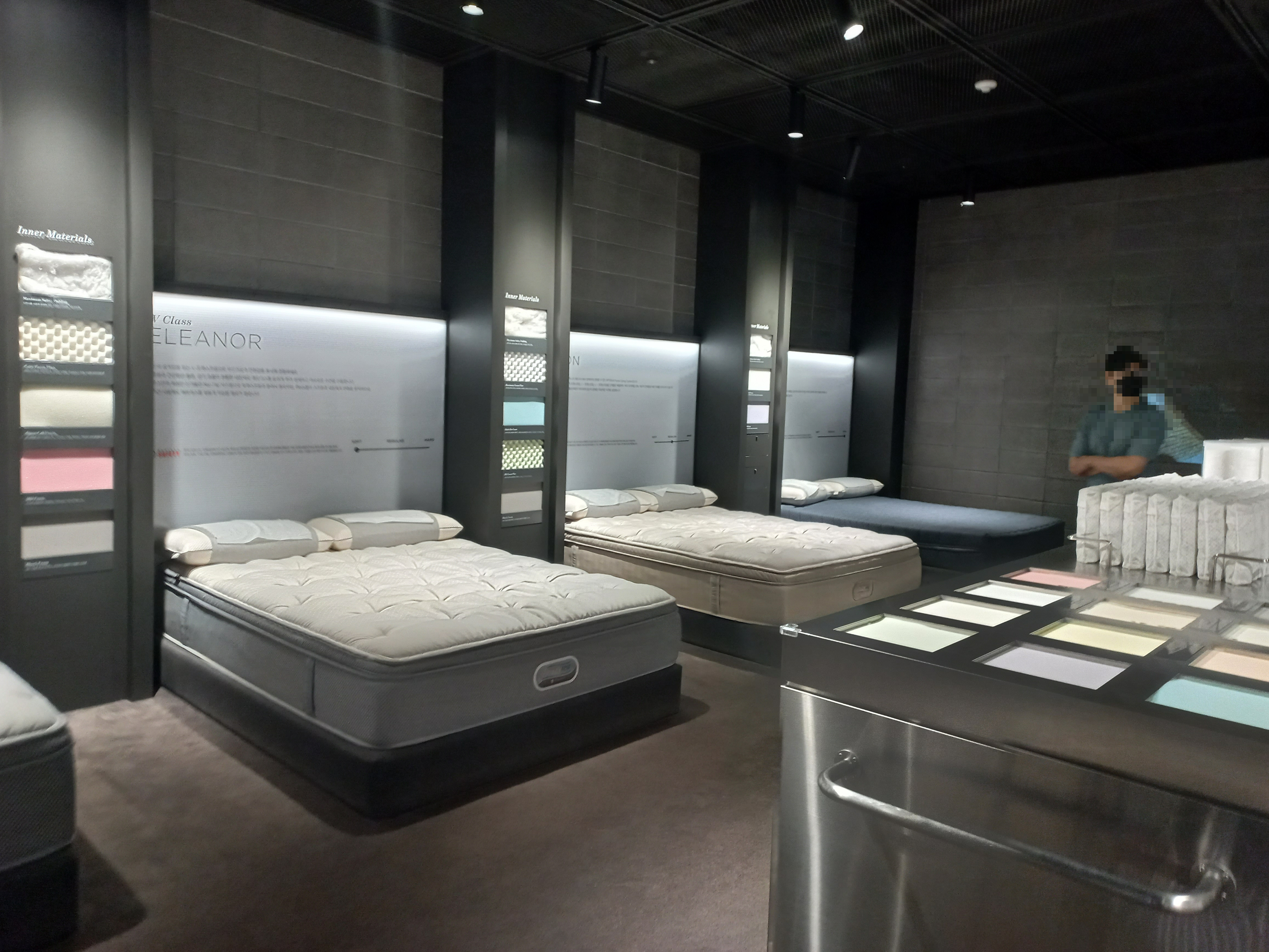 이 옆에 직원분이 계시고, 침대관련해서 상담 진행도 가능해요