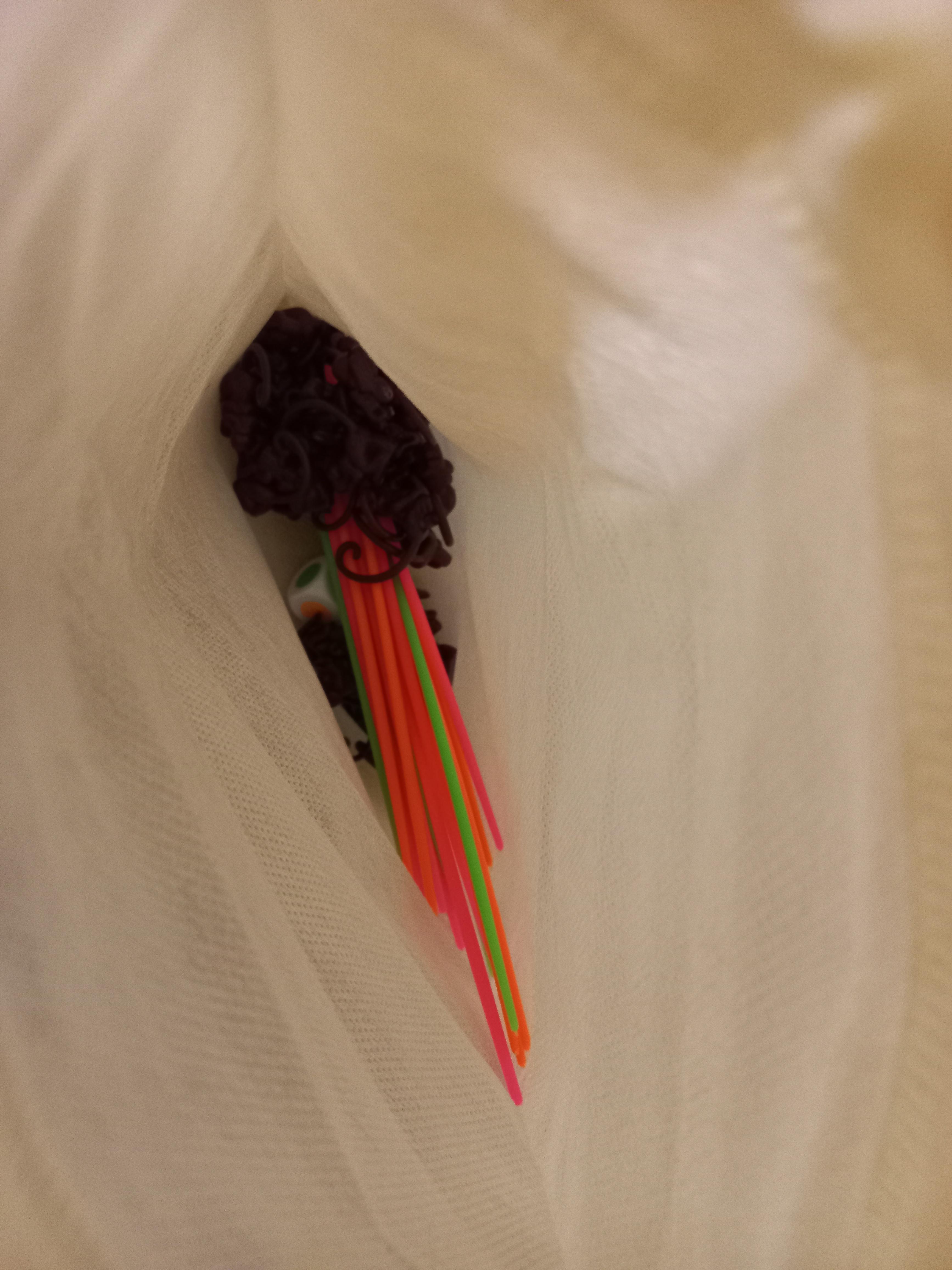 야자나무를 조립하고, 야자나무에 3가지 색 막대를 섞어서 골고루 꽂아줍니다.