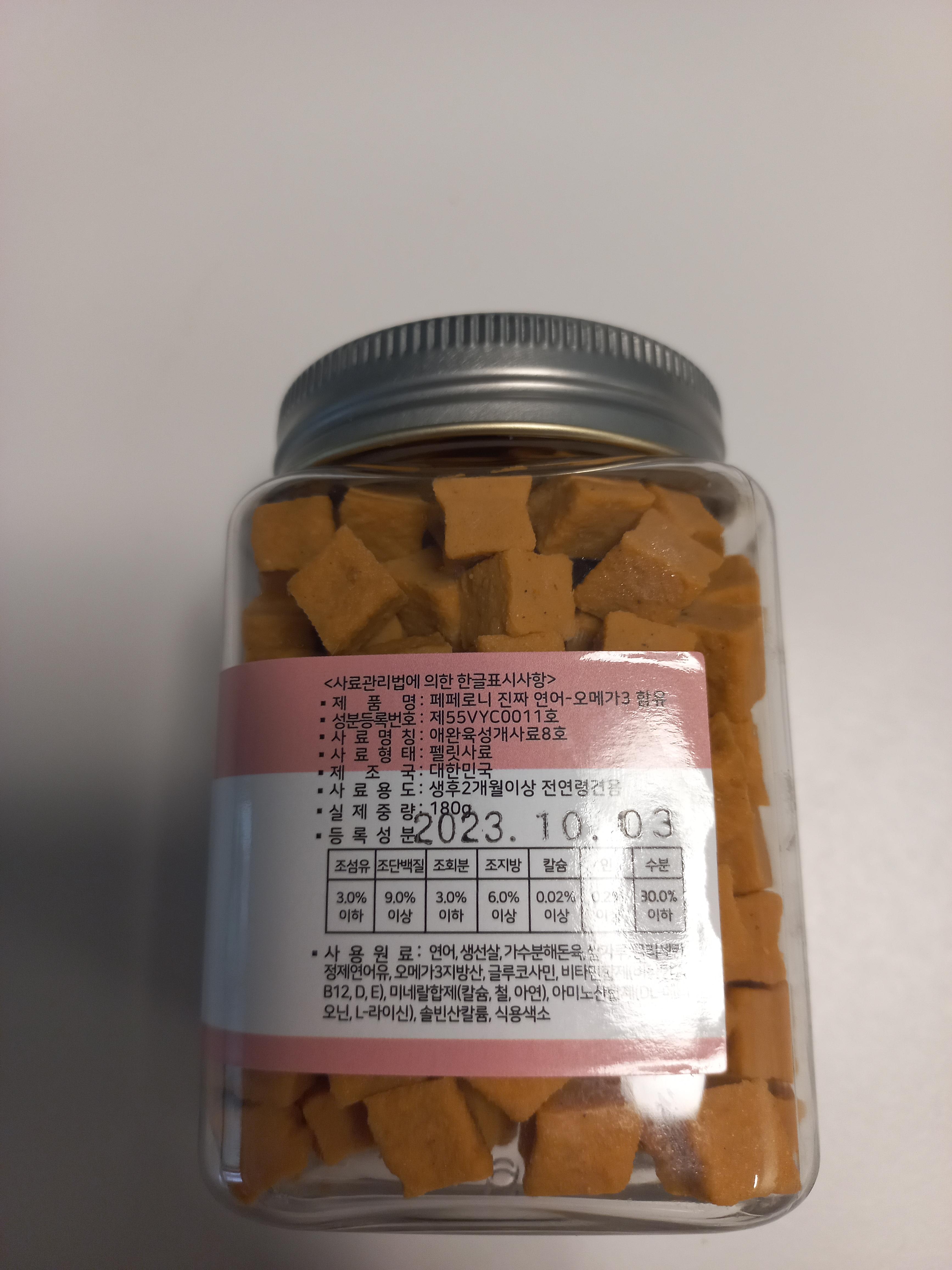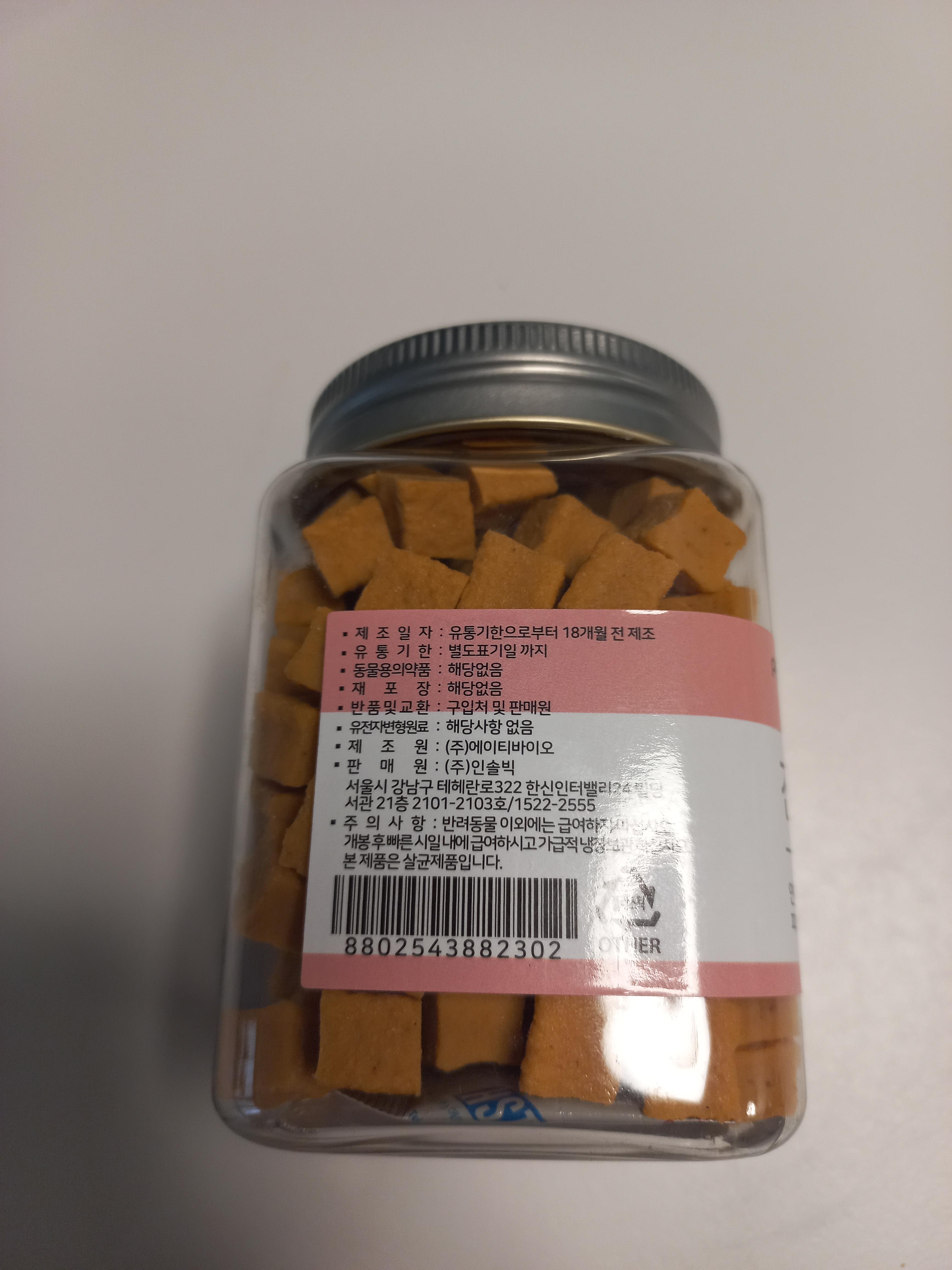 이게 180g 인데 간식 한알이 약 1g이여서 180개가 들어있대요~