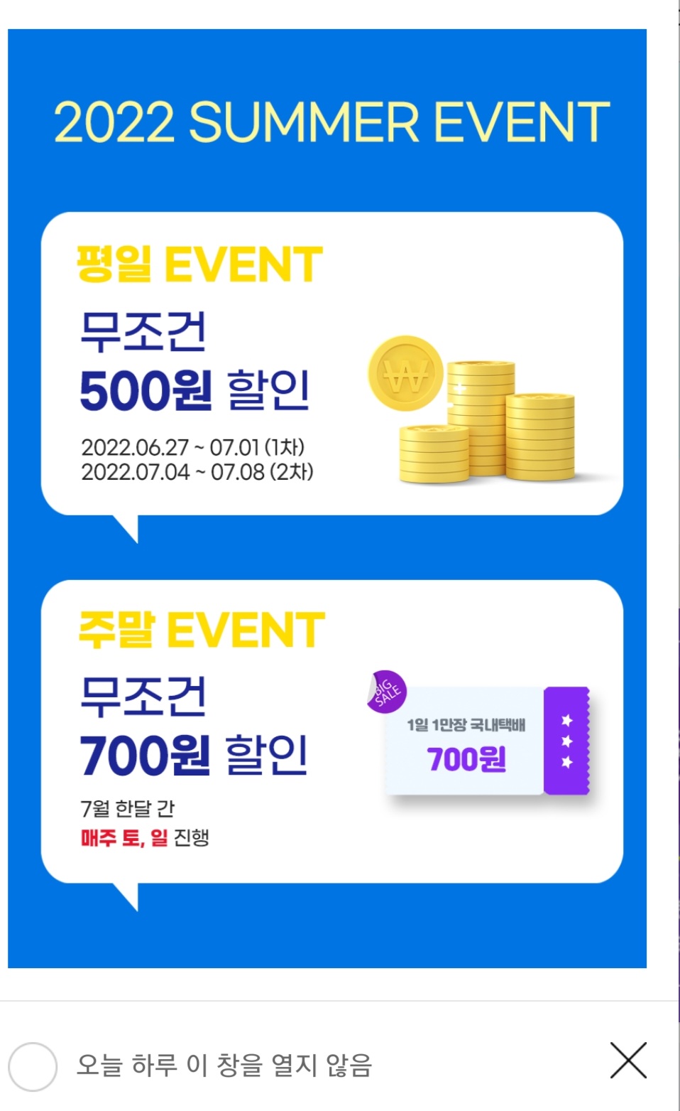 평일, 주말 할인 쿠폰 있습니다!
