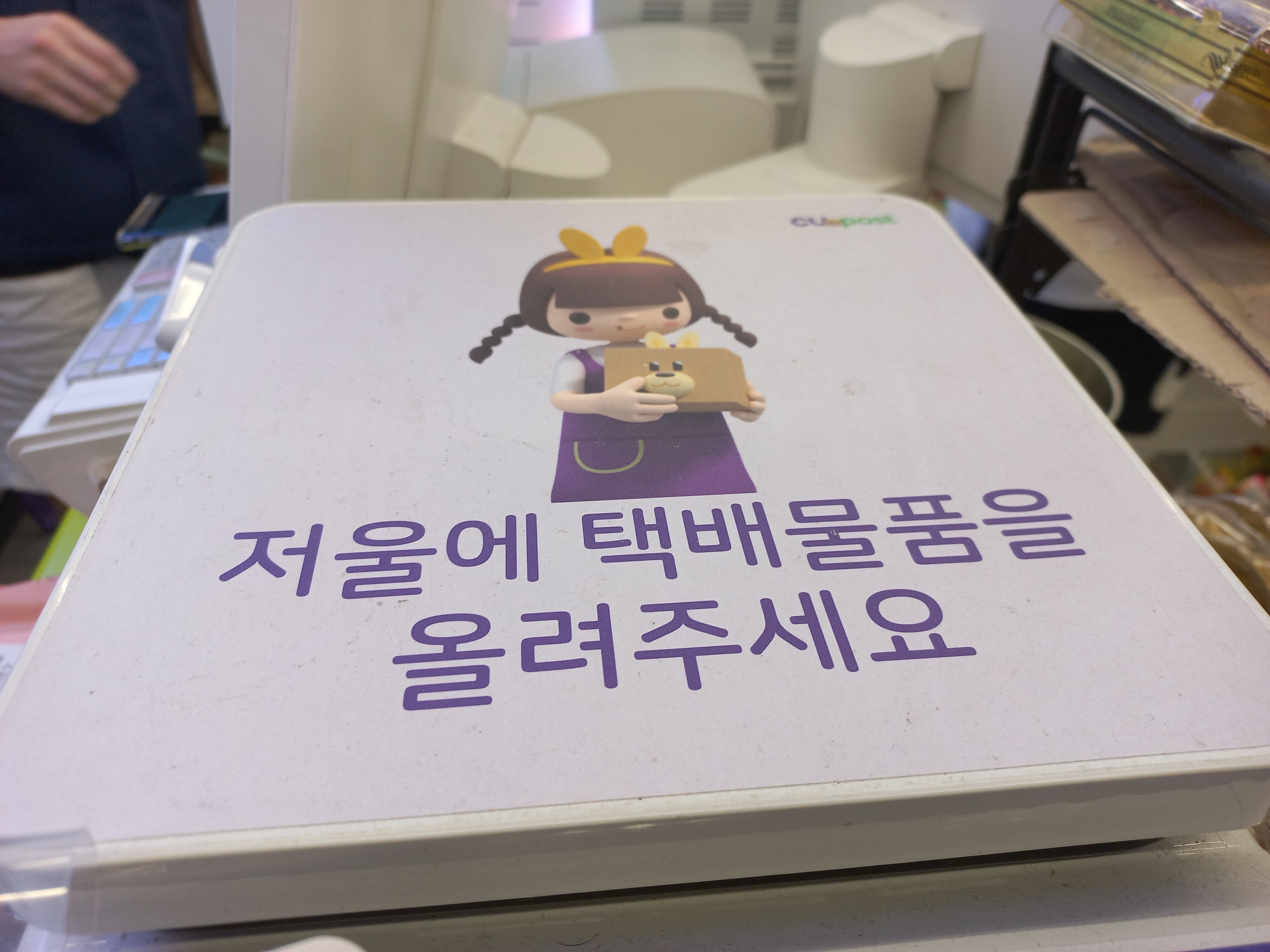 그럼 기계에서 안내음성 + 화면과 함께 부칠 물건을 저울에 올려놓으라고 합니다.