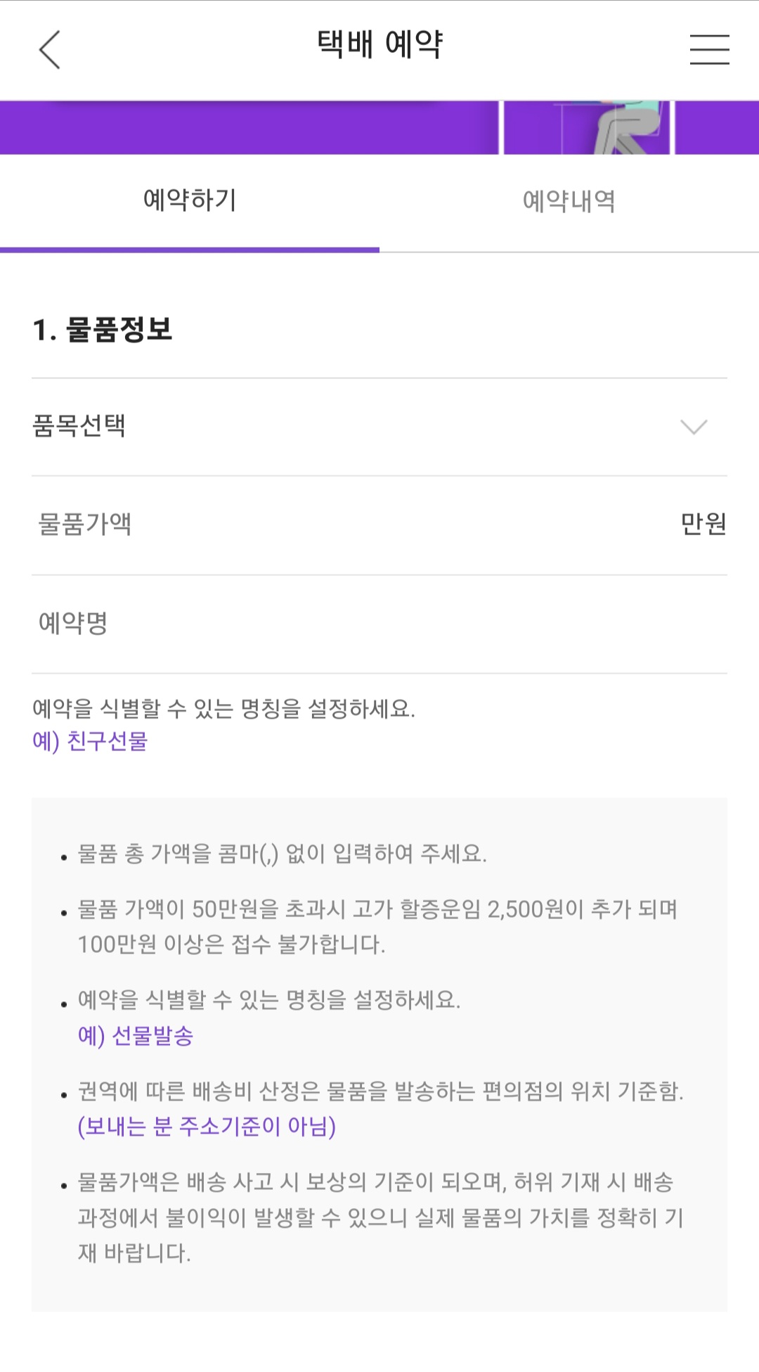 50만원 초과시 고가 할증운임 2500원이 추가됩니다.
