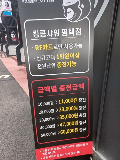 킹콩샤워는 RF카드로만 사용가능합니다.