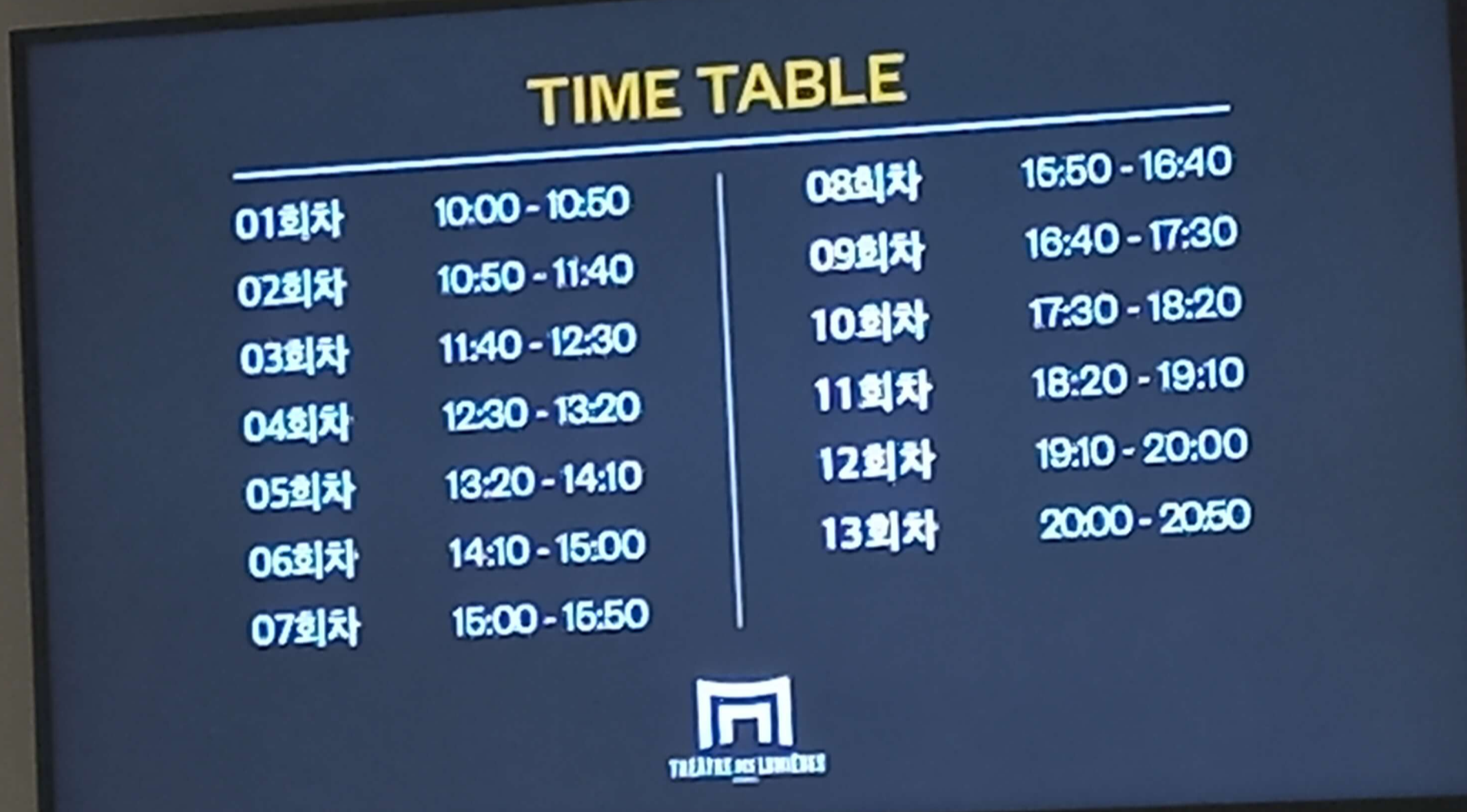 전시회장에 가면 이렇게 타임테이블이 안내되어있는데요.